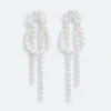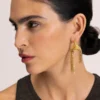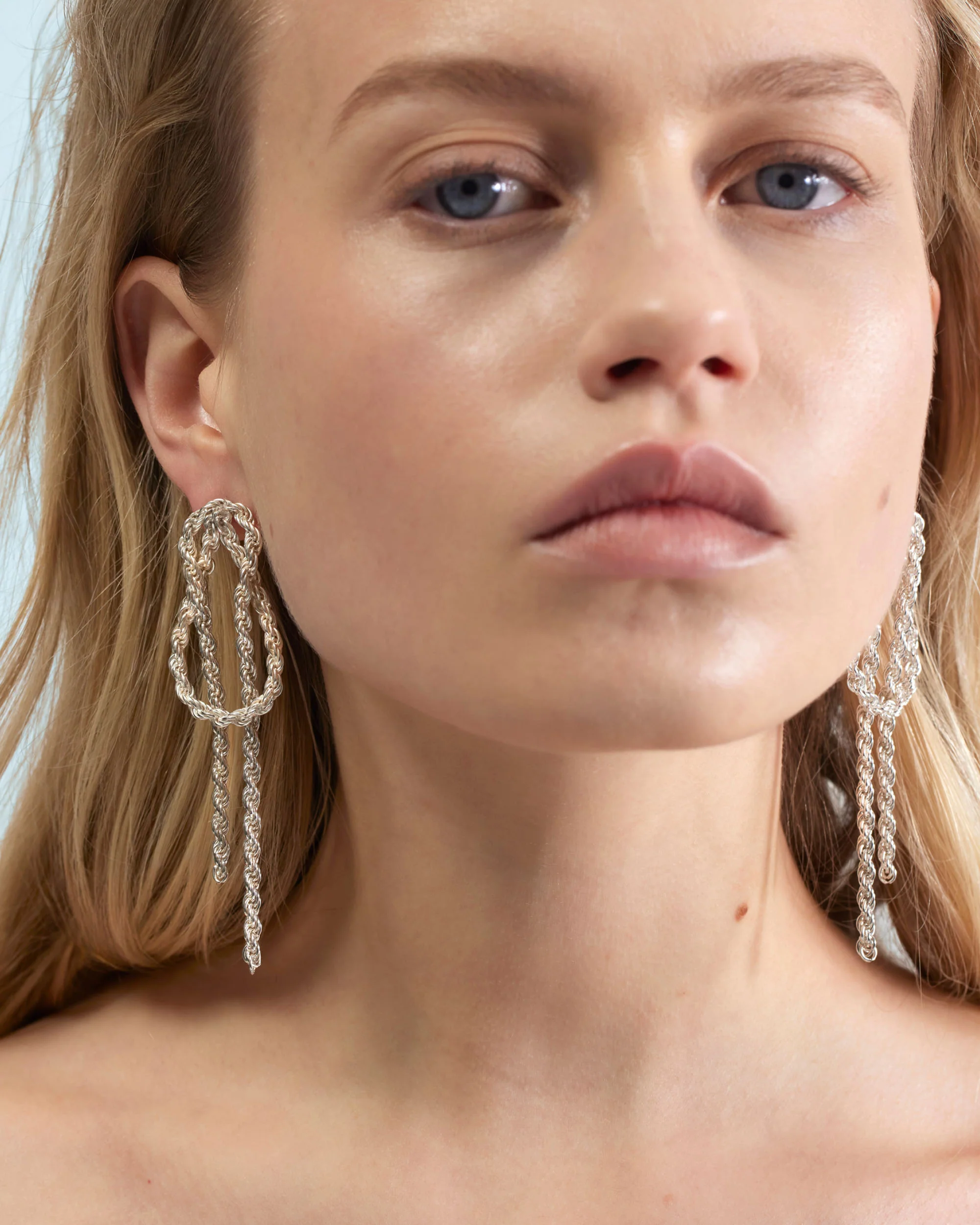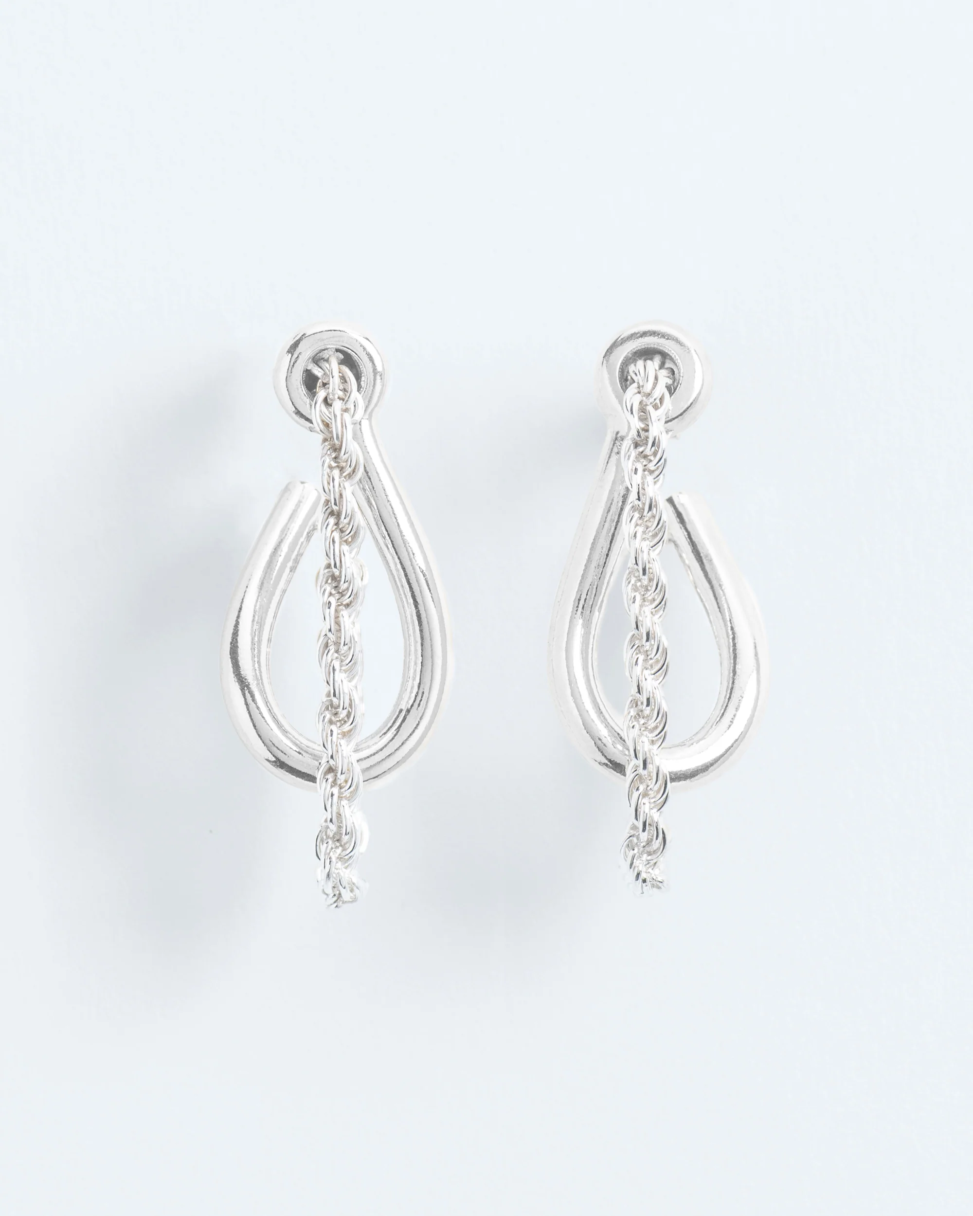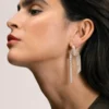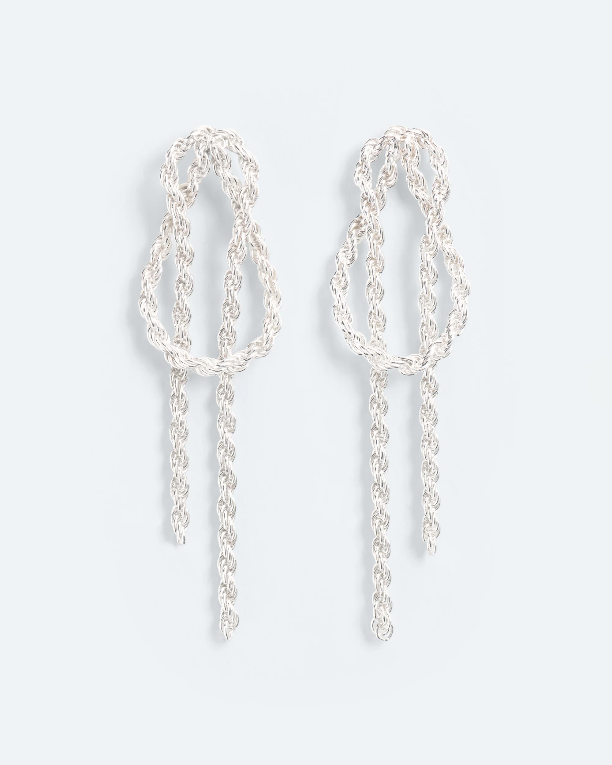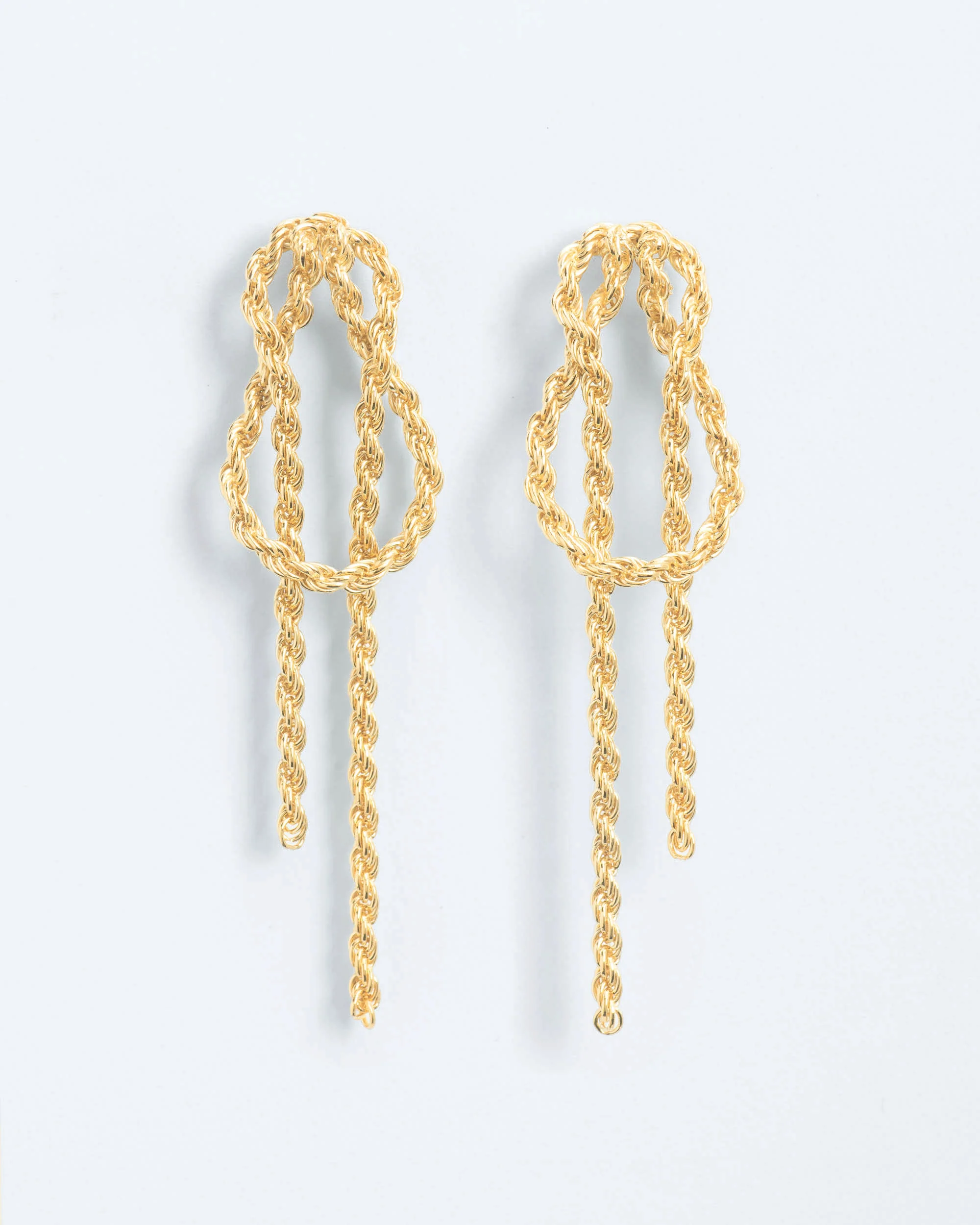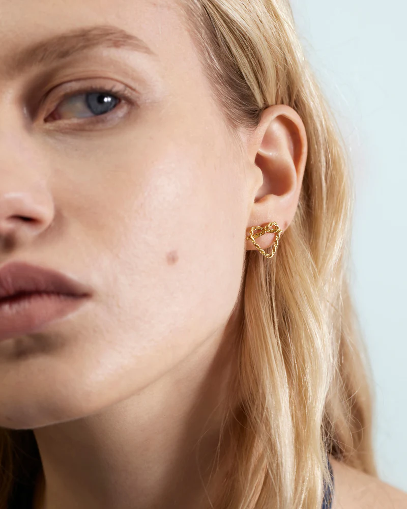 €420,00Gedraaid, lusvormig en verweven, deze paalsteekoorbellen met bungelende kettingen zijn geïnspireerd op de poëzie van knopen – tijdloze symbolen van verbondenheid en kracht. Een knoop die stevig vasthoudt, maar toch bevrijdt.