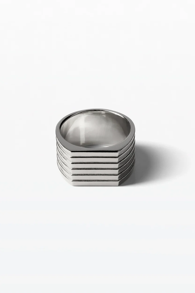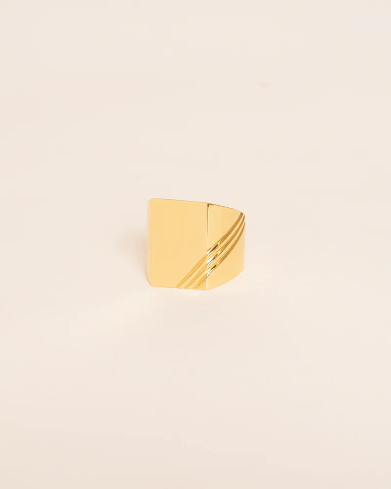 Wouters&Hendrix – rechthoekige signet ring met fijne lijntjes