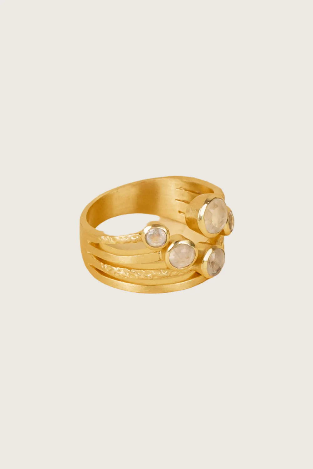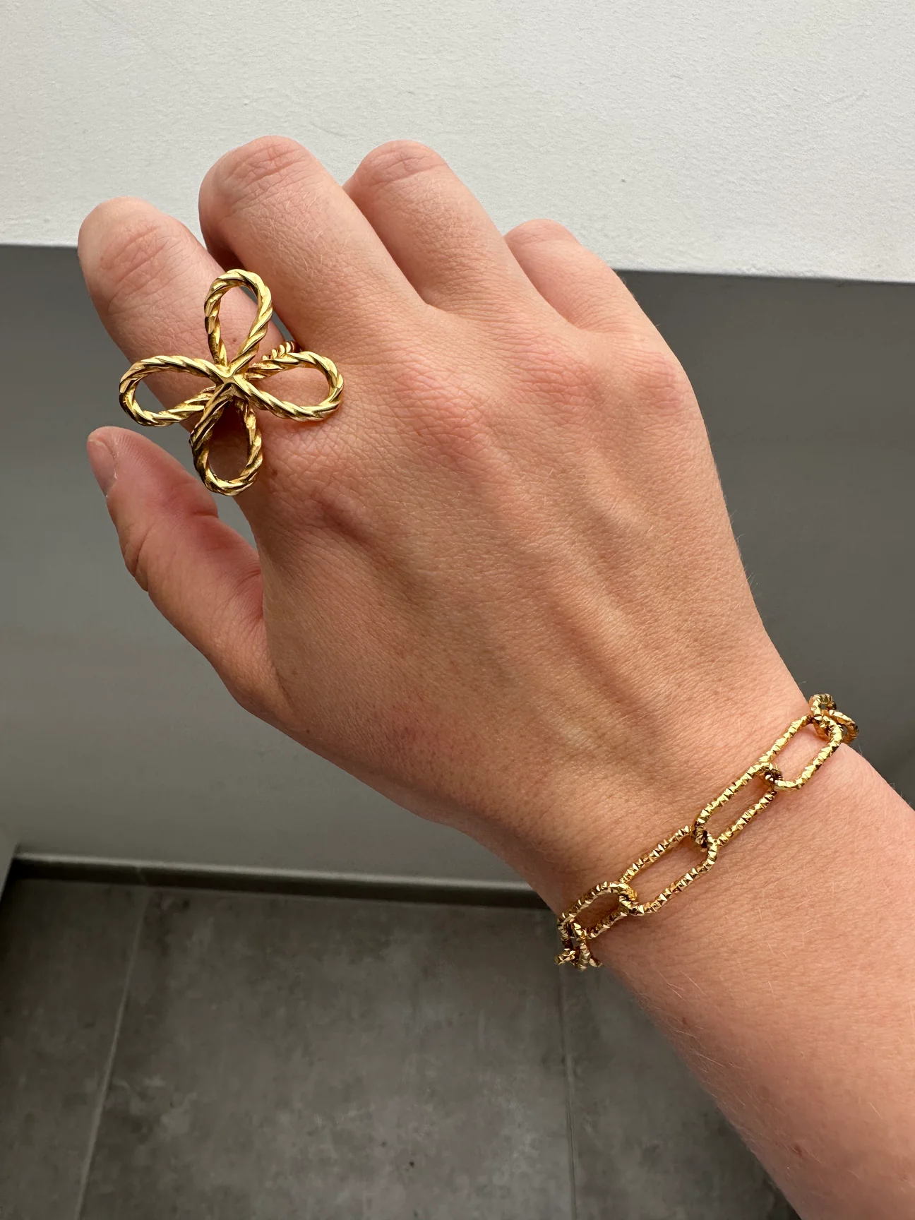 Deze ring combineert jeugdige speelsheid en verfijnde elegantie, perfect om in laagjes te dragen of alleen, om weer in contact te komen met eenvoud en harmonie.