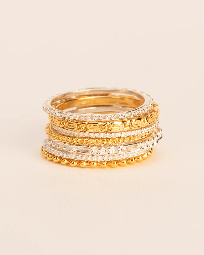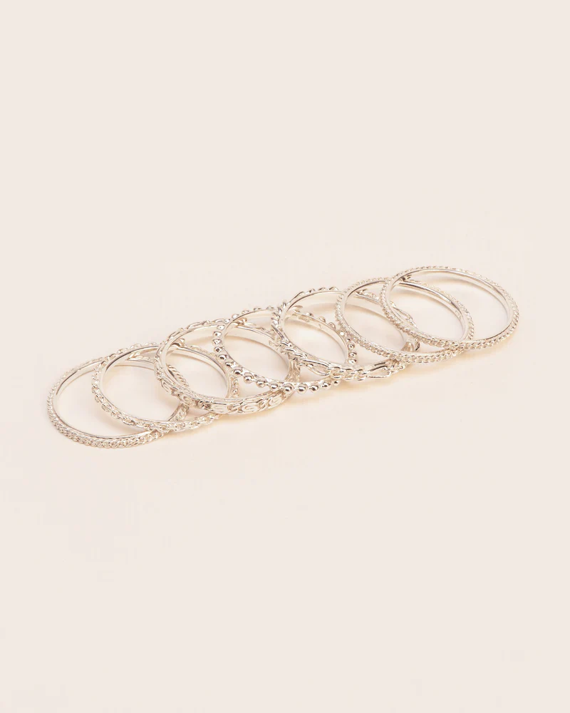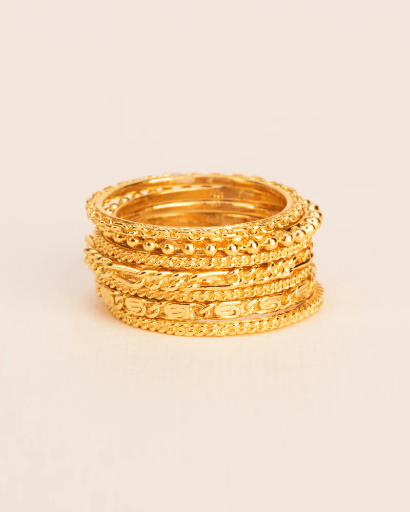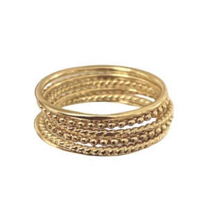 Set van 6 fijne “stack” ringen. Mooi om bij elkaar te dragen maar ze kunnen natuurlijk ook gewoon los van elkaar gedragen worden. Wanneer je de 6 ringen bij elkaar draagt, is de breedte 9mm.