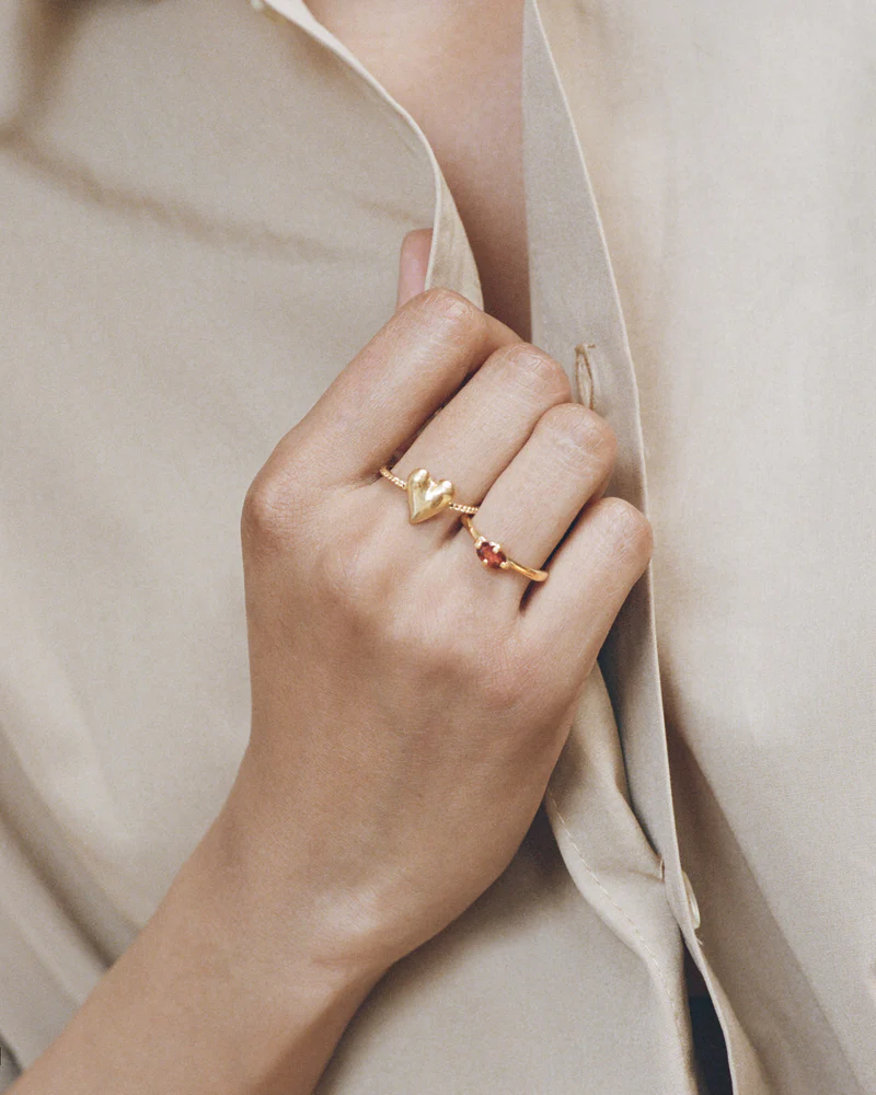 De organische vorm van de ring is een uiting van Wouters & Hendrix’ liefde voor het onvolmaakte, terwijl het rood van de granaat de liefde symboliseert. The Tell-Tale Heart’ collectie gaat over liefdessymbolen en wat ze vertegenwoordigen.