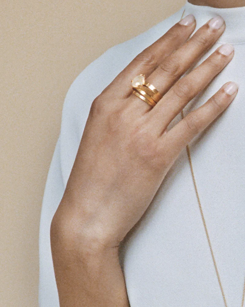 €280,00Lore Van Keer – credo ring met witte maansteen zilver verguld