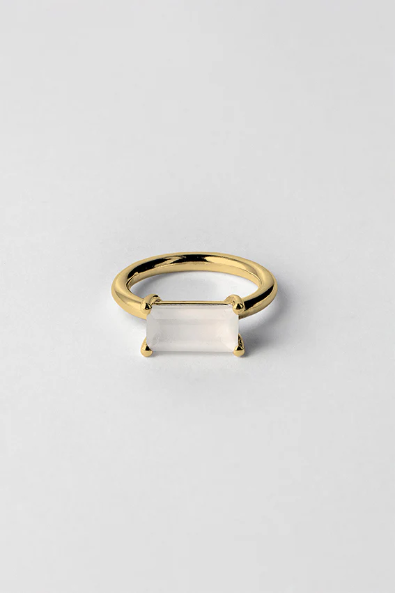 Lore Van Keer – credo ring met witte maansteen zilver verguld