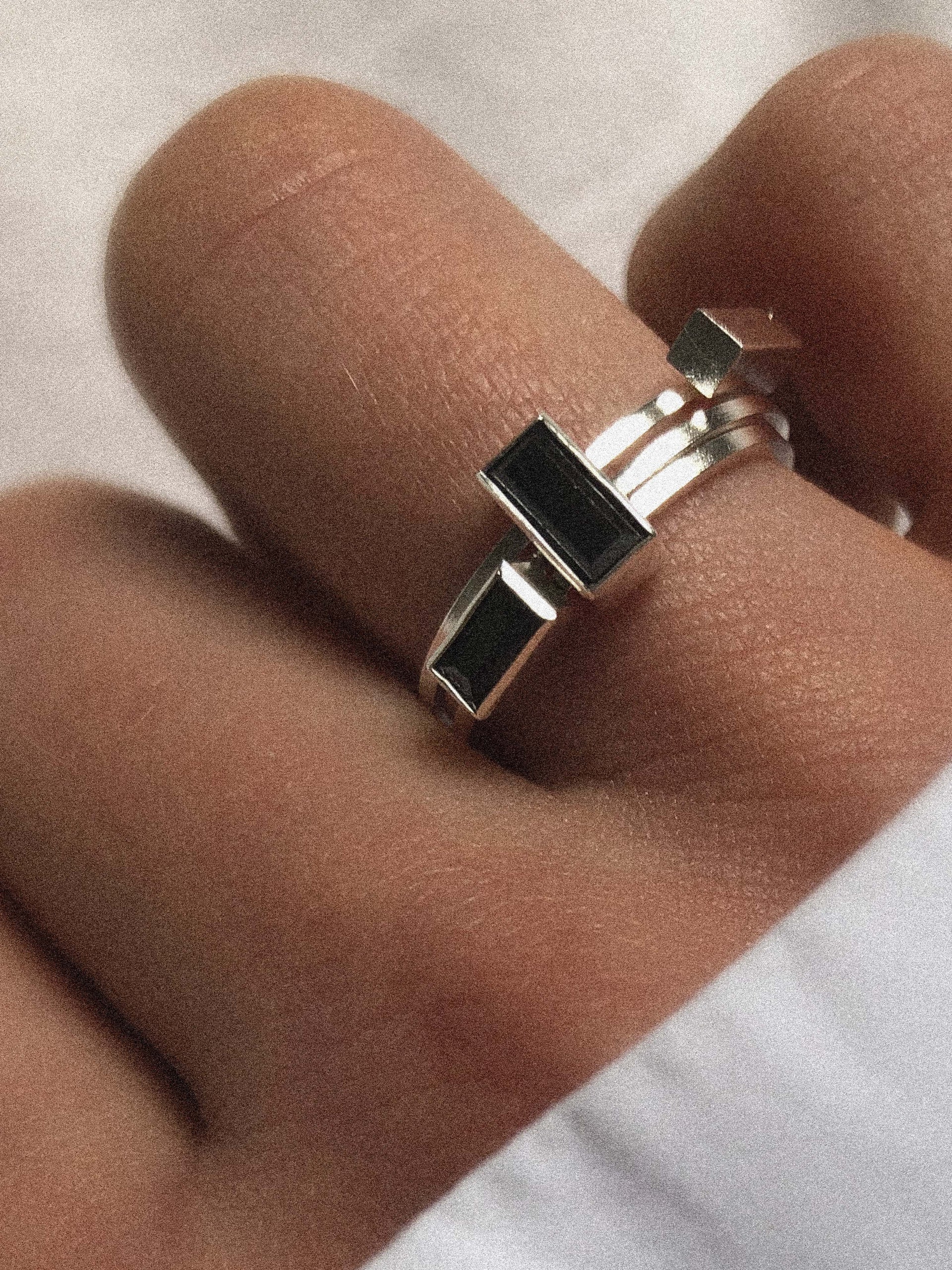 €285,00Lore Van Keer – capsule triple ring met onyx zilver