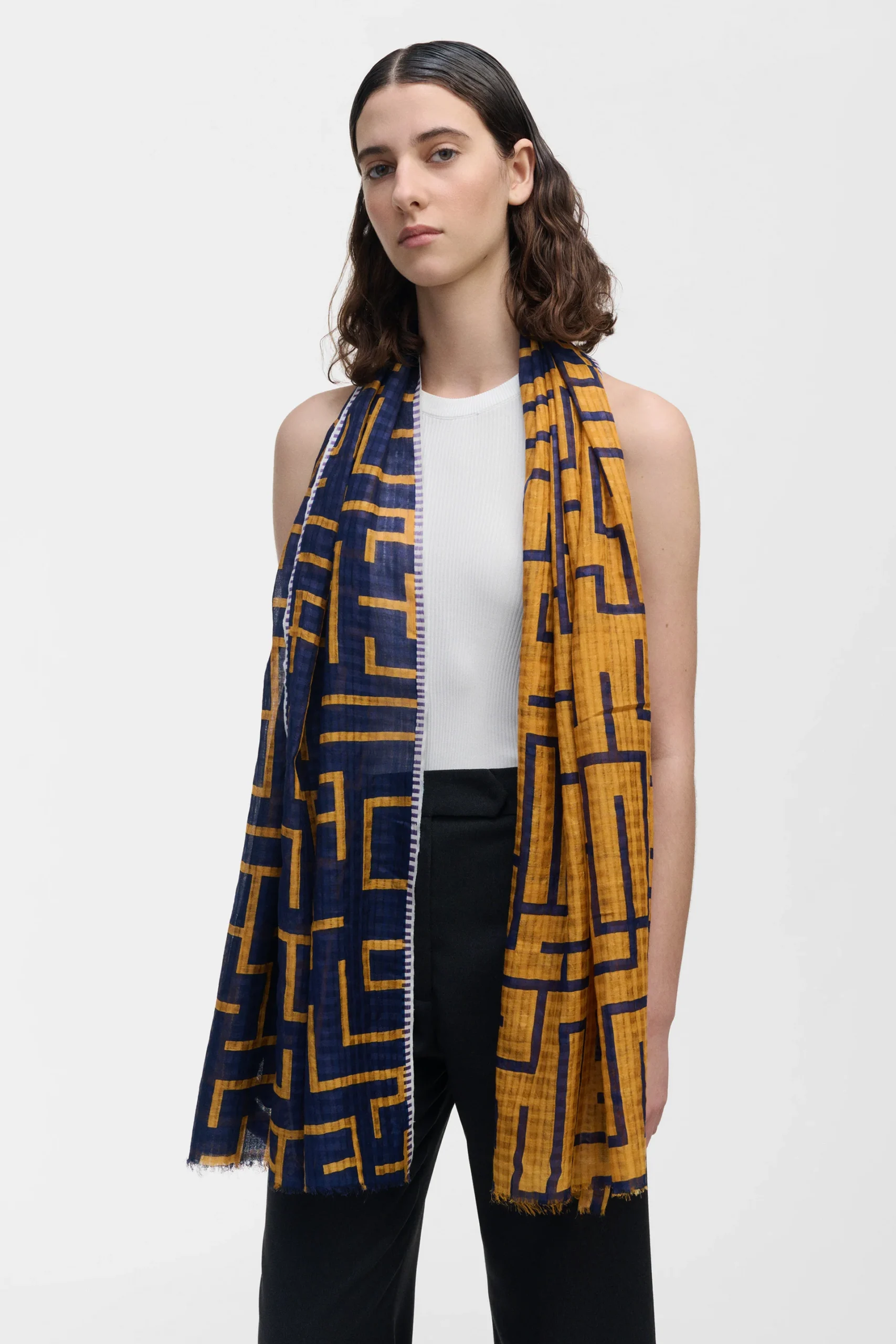 Inoui Editions is ook de liefde die Lise en Mathilde delen voor de Baie de Somme, het land van hun jeugd. Het is hier dat hun verbeelding werd gesmeed en daarom hebben ze hun designkantoor gevestigd aan de baai, in een voormalig boothuis. De sjaals worden ontworpen in Frankrijk en geproduceerd in India.