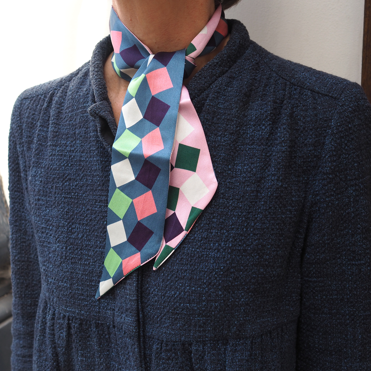 Epice – twilly korte zijden sjaal pink