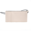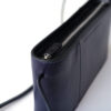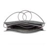 Afwerking: volledig lederen (daim) interieur, gesloten met rits. Bevat 1 hoofd compartiment met rits, daarnaast nog twee zij compartimenten. Binnen het hoofd compartiment bevindt zich nog een steekzak om je telefoon bij de hand te houden. Schouderband gemaakt van rubber met lederen handvat.