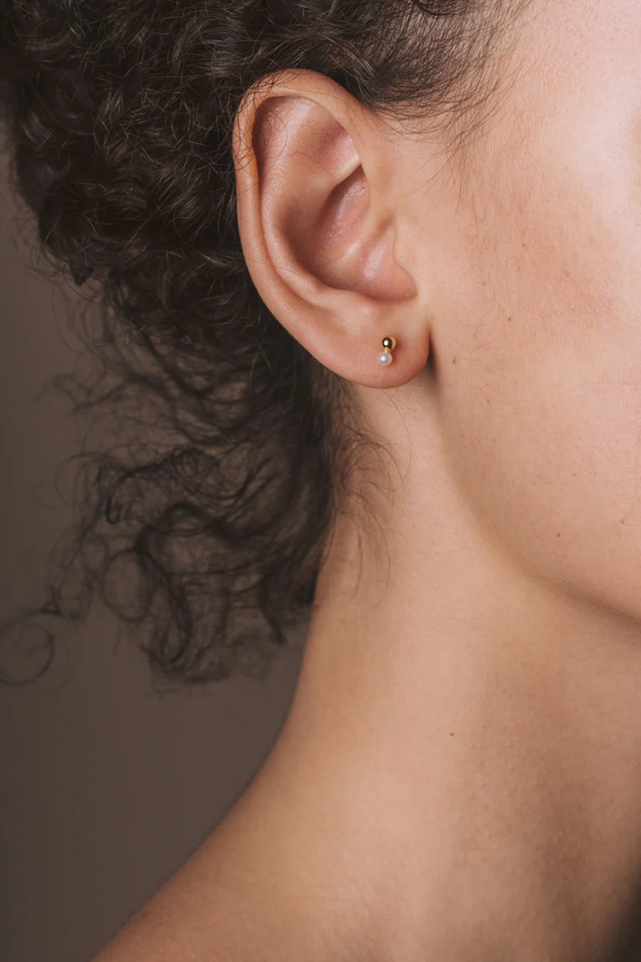 MHL – oorbellen met balletje en witte parel zilver verguld