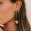 €22,50Deze Flower Hoops hebben een delicaat ontwerp met open bloemmotieven, die doen denken aan bloeiende bloemen in een zonovergoten tuin. Voeg een vrouwelijke charme toe aan je earparty met deze hoepels.