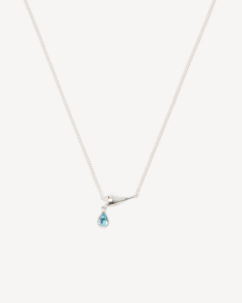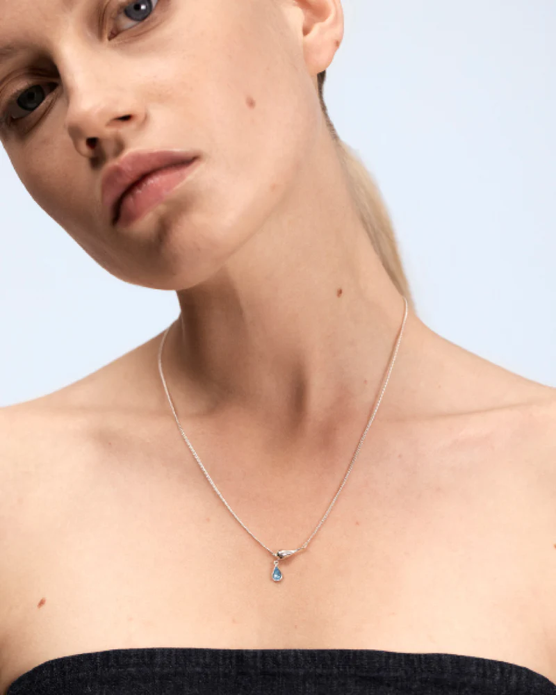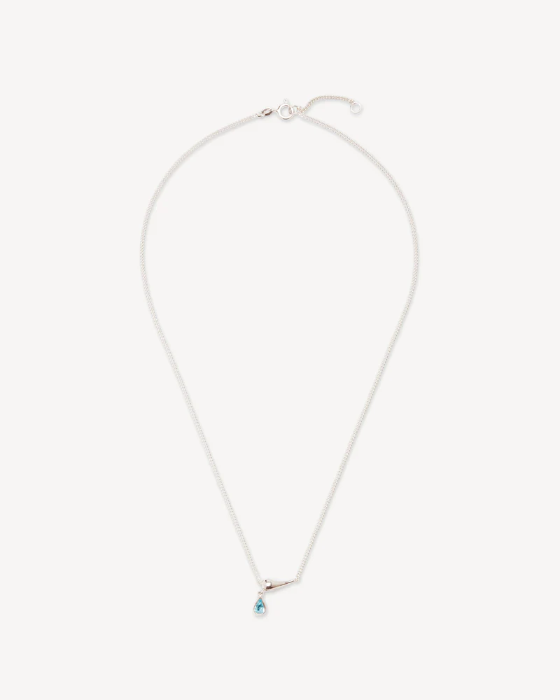 Deze speelse en levendige druppelketting wordt gekenmerkt door een hangend aquamarijnkristal, dat het water des levens nabootst. De Rewriting the Tales-collectie is herschreven voor veel langer dan een enkel lente-zomer sprookje en is bedoeld om vaak gedragen te worden, om in te leven en om een pagina te worden in ieders persoonlijke verhaal.