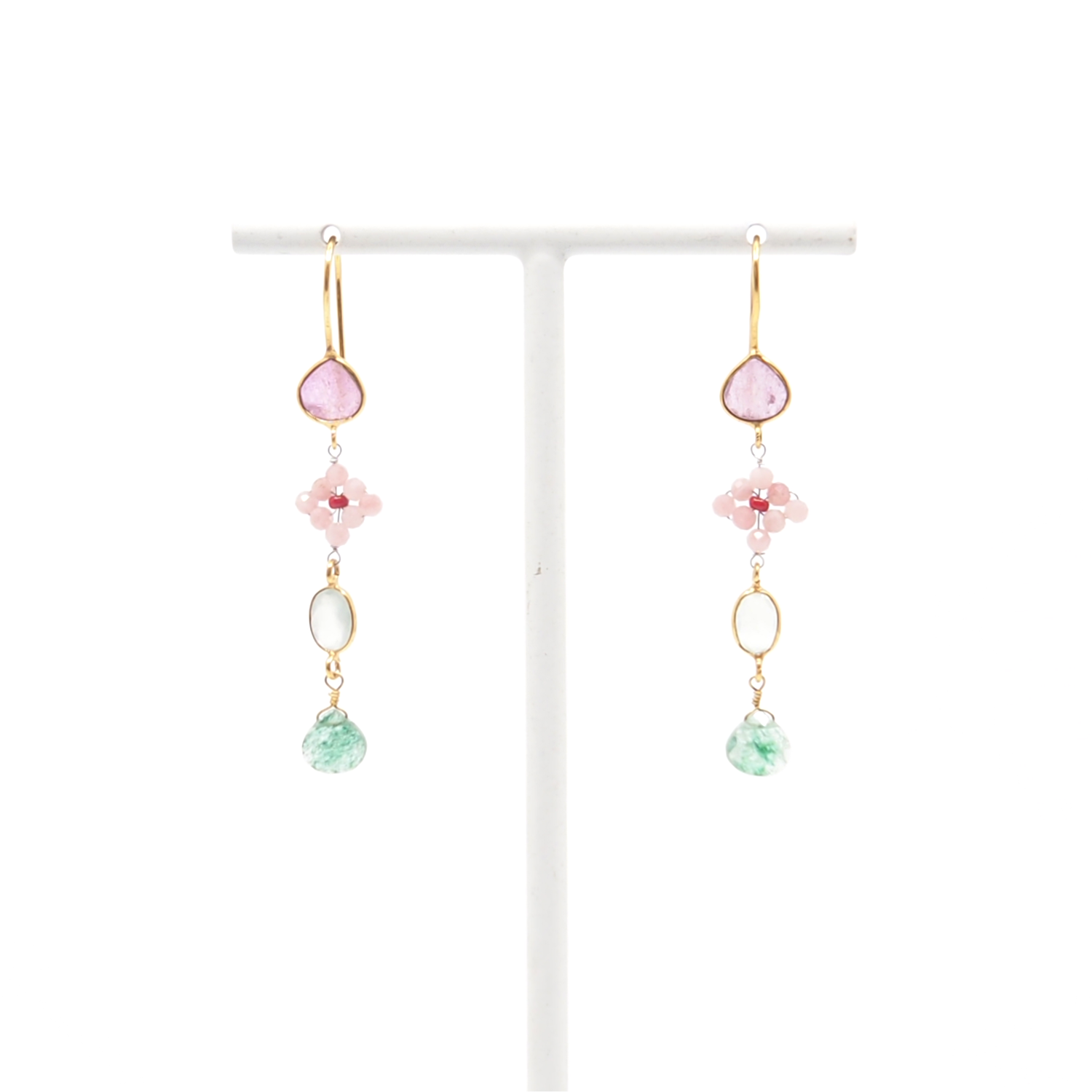 AX – oorbellen met robijn, jaspis, carneool, amethyst en glasparels