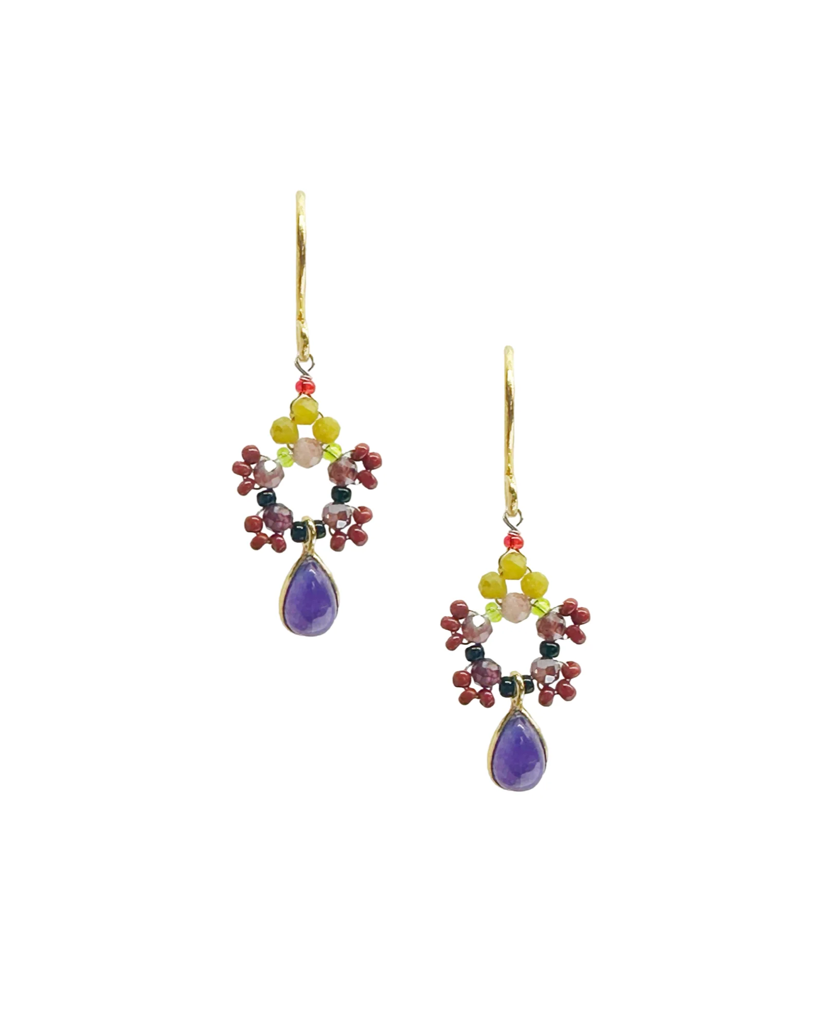 Steen: rode jaspis, maansteen, kwarts en glasparels