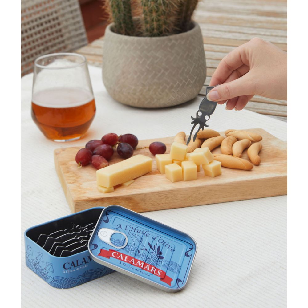 De aperitiefvorkjes worden geleverd in een metalen box met een kleurrijke print, waardoor het een geweldig cadeau-idee is voor vrienden en familie. Het is gemakkelijk te gebruiken en schoon te maken, waardoor het een praktische keuze is voor dagelijks gebruik. Voeg een vleugje plezier en functionaliteit toe aan je keuken met deze trendy set.