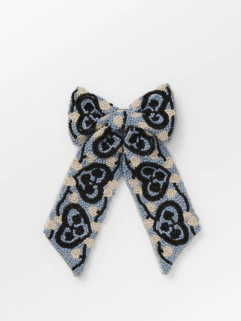 Deze Brombeere Beaded strik kan gebruikt worden als haarspeld en broche.