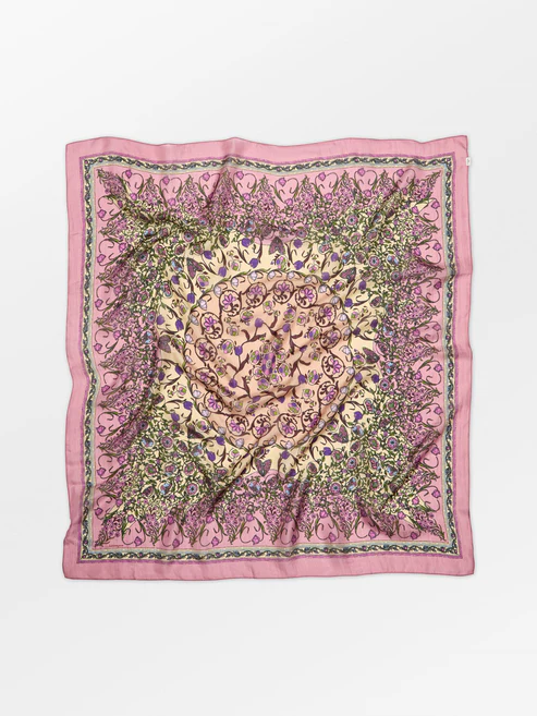De Gardenparty Taby Sia-sjaal is een vierkante sjaal van 100 x 100 cm, gemaakt van 100% taby-zijde. Het bloemenpatroon zorgt voor een zachte, vrouwelijke look. De zijde voelt licht aan op de huid en is gemakkelijk te stylen om de nek, in het haar of aan je tas.