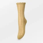 Leofa Cotta sokken is een paar zachte sokken gemaakt van 82% katoen, 10% polyamide, 7% polyester en 1% elastaan. De sokken hebben een delicaat patroon en een kleine gerimpelde rand aan de bovenkant.