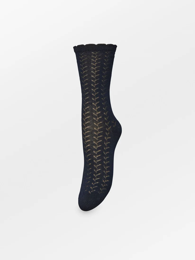 Leofa Cotta sokken is een paar zachte sokken gemaakt van 82% katoen, 10% polyamide, 7% polyester en 1% elastaan. De sokken hebben een delicaat patroon en een kleine gerimpelde rand aan de bovenkant.