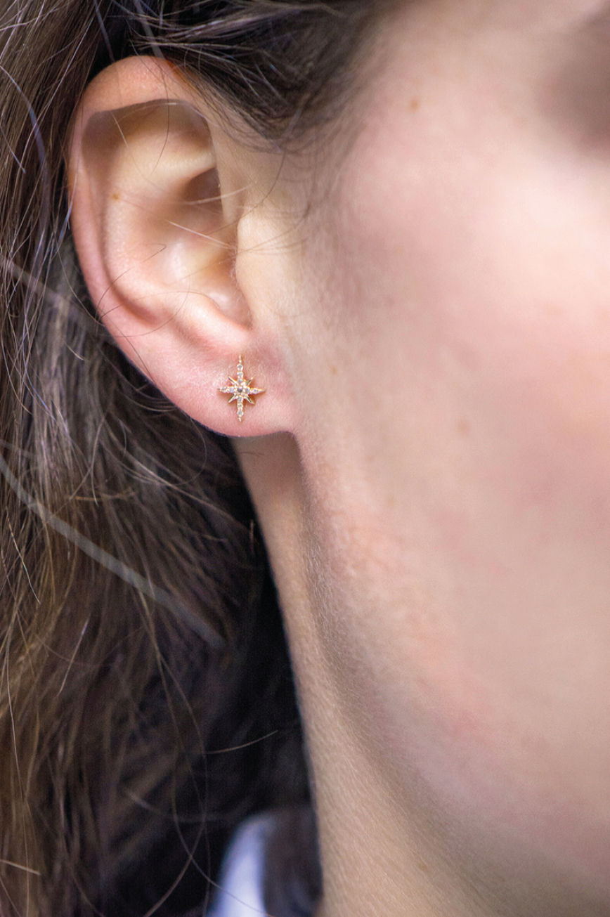Home » Winkel » Juwelen » Gouden juwelen » Gouden oorbellen » Céline D’aouts – 14K gouden single stud poolster met diamanten