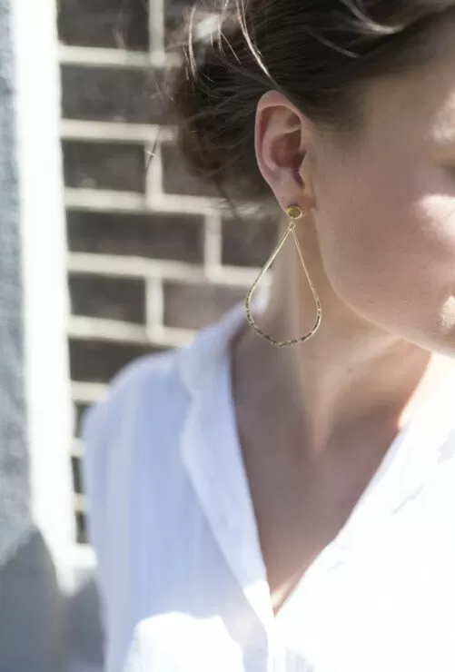 Fijne lichtgewicht oorstekers met een open platte gehamerde pegel. Lengte is 8 cm. De oorbellen hebben een prachtige zwaarvergulde kwaliteit. In een prachtige longlasting stainless steel kwaliteit. Geen nikkel.