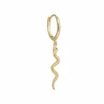 Enkel verguld oorringetje met snake hanger. Gemaakt van 100% 925 sterling zilver met goudplating. Lengte is 4cm. Bevat geen nikkel. (Let op het gaat hier om een enkel oorringetje)