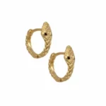 Korte vergulde snake oorstekertjes met 2 kleine zwarte steentjes. De basis van deze vergulde oorstekers is 100% sterling zilver. Lengte is 1 cm. Bevatten geen nikkel.