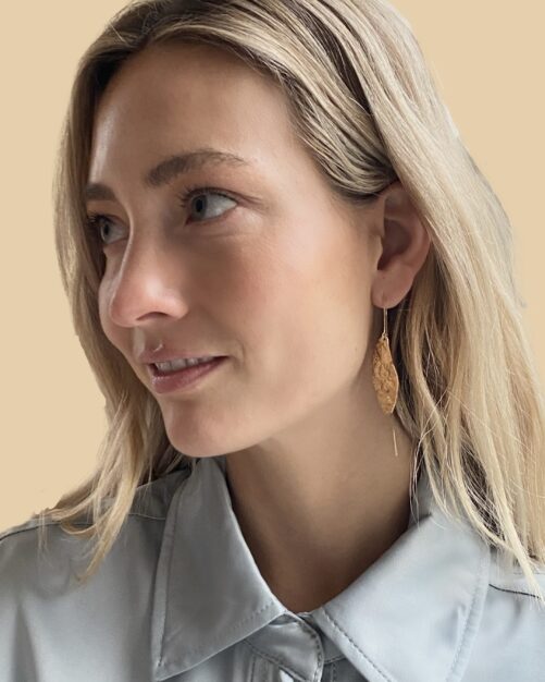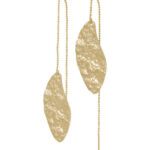 Vergulde earthreads van fijne ballchain met organische gehamerde hanger. De afmetingen van de hanger zijn 4 x 2cm.