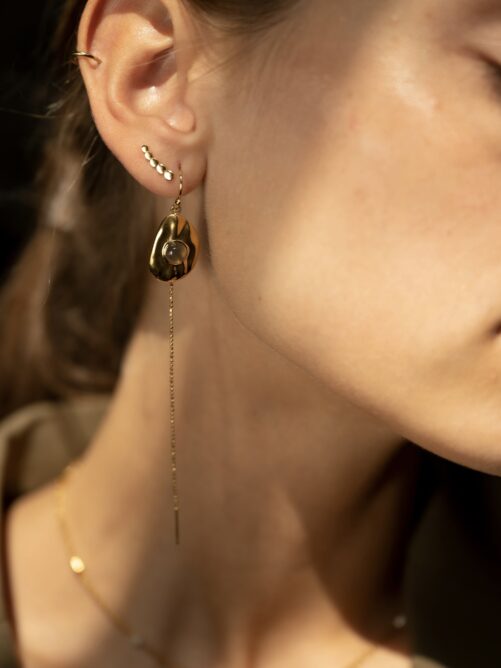 In samenwerking met bekwame ambachtslieden zorgt Céline ervoor dat elk sieraad met minutieuze aandacht voor detail met de hand wordt vervaardigd in 14-karaats goud en gezet met ethisch verkregen edelstenen. Deze stenen, die de schoonheid van imperfectie en de natuur benadrukken, worden gekozen vanwege hun unieke karakter en energetische kwaliteiten. Ze dragen een verhaal met zich mee dat de drager verbindt met zijn of haar eigen reis.