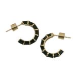 Vergulde creolen met zwarte emaille in streeppatroon.