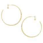 Vergulde platte oorringen met gehamerd patroon.