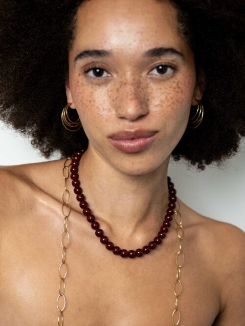 De sieraden van Gigi Clozeau worden gemaakt in het familieatelier. Ze gebruiken uitsluitend de beste materialen: 18-karaats goud en een sublieme kalkvernis, bekend om zijn glans en kwaliteit. Deze hoogwaardige hars zorgt voor een rijk palet. De ambachtelijke toepassing ervan op geel-, rosé- en witgouden kettingen is een ware kunst, het resultaat van 50 jaar expertise van Alain Clozeau.