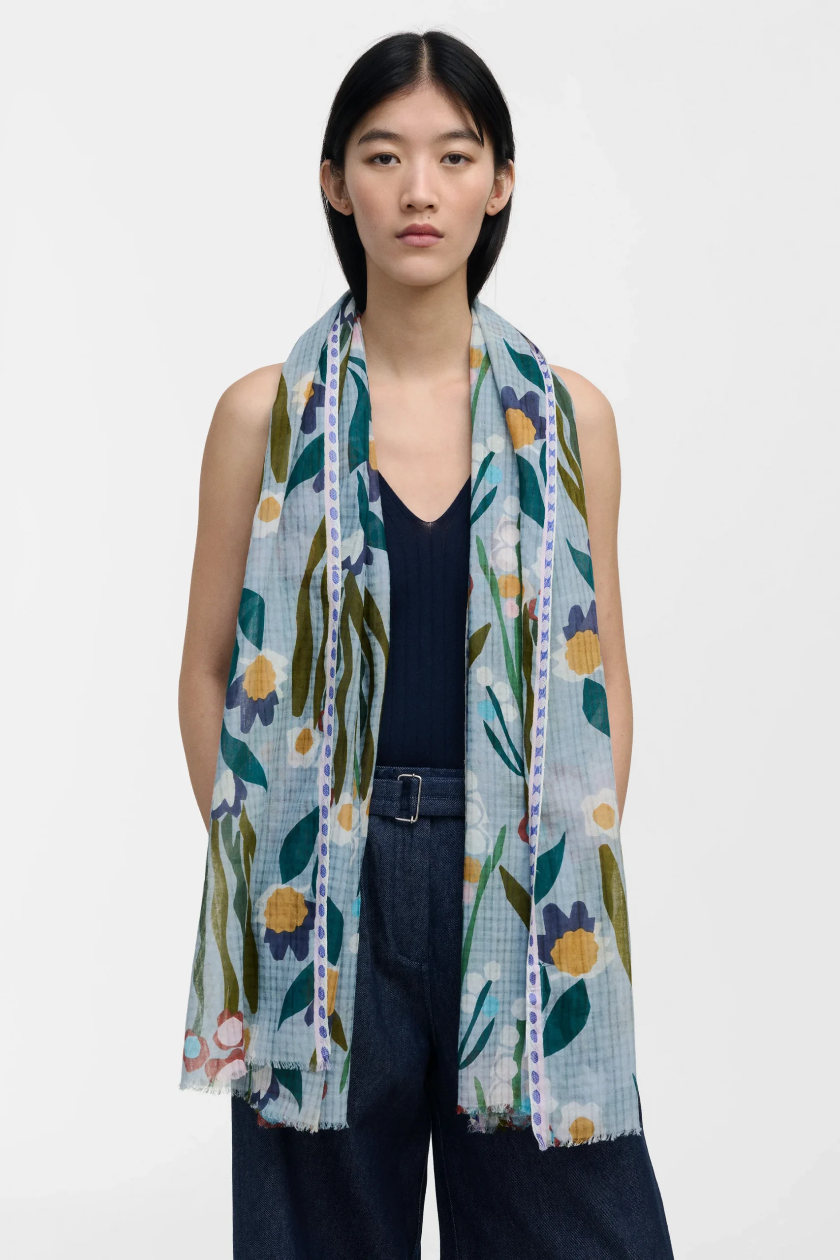 Handgeweven stola met een fijn, subtiel ruitjespatroon. Luchtig model, gemaakt van een delicate mix van katoen en zijde, zeer zacht voor de zomer. Het doet denken aan een dromerige natuur vol grote, denkbeeldige bloemen. Een rijk en levendig kleurenpalet benadrukt de delicatesse van de uitgesneden bloemen. Elegante jacquardrand, afgewerkt met fijne franjes. Ambachtelijke zeefdruk; één kader per kleur.