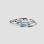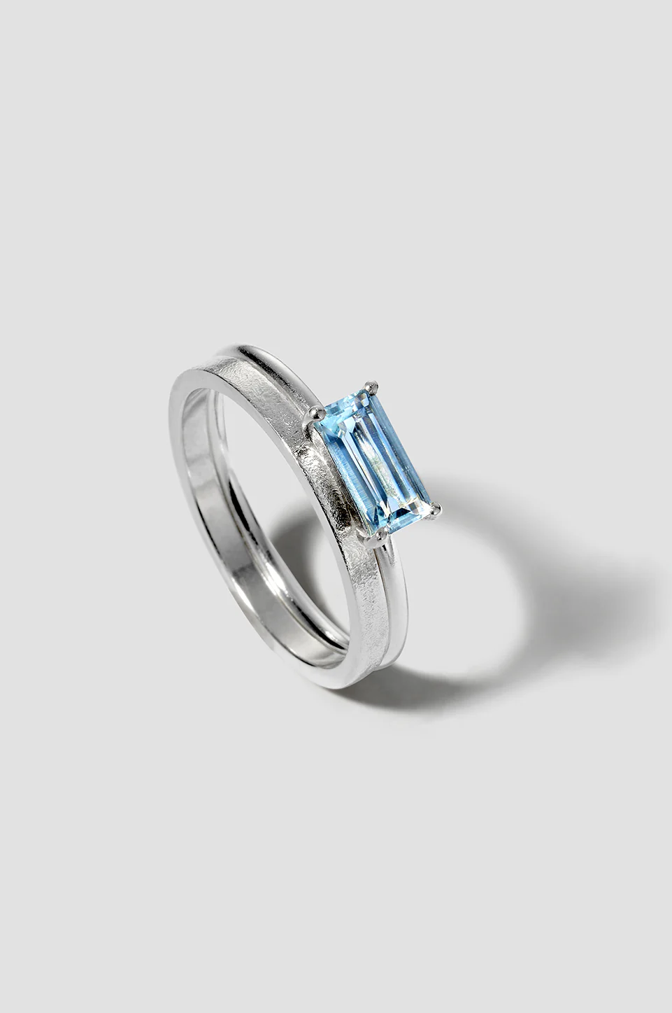Een paar stapelbare ringen die samen of apart gedragen kunnen worden, met de betoverende vloeibare blauwe schittering van topaas.