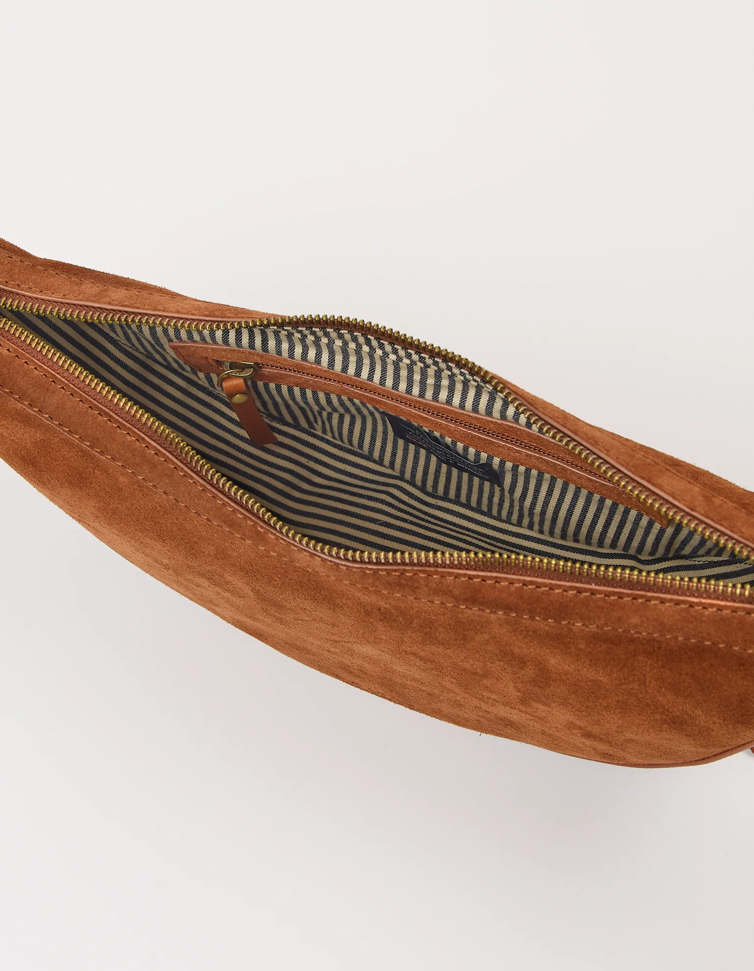 Leo, de tas van het moment, verschijnt dit seizoen in Cognac chroomvrij suède met details van Klassiek Leer. Deze uitvoering is afgewerkt met een prachtig handgeweven, verstelbare crossbody strap. Leo sluit met een rits en heeft binnenin zowel een ritsvak als een steekvak, plus een ruim hoofdvak waar met gemak een kleine waterfles en e-reader in passen.