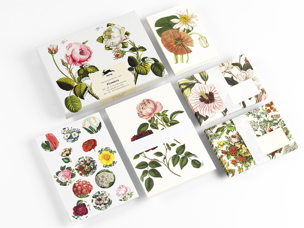 Elke doos bevat 10 vellen met 4 verschillende ontwerpen (aan één kant bedrukt), wat neerkomt op 40 vellen A5-briefpapier (150 x 210 mm / 6” x 8¼”). Inbegrepen zijn 20 bijpassende enveloppen (10 x 2 ontwerpen), 8 wenskaarten (2 x 4 ontwerpen) en 25 diverse stickers en labels.