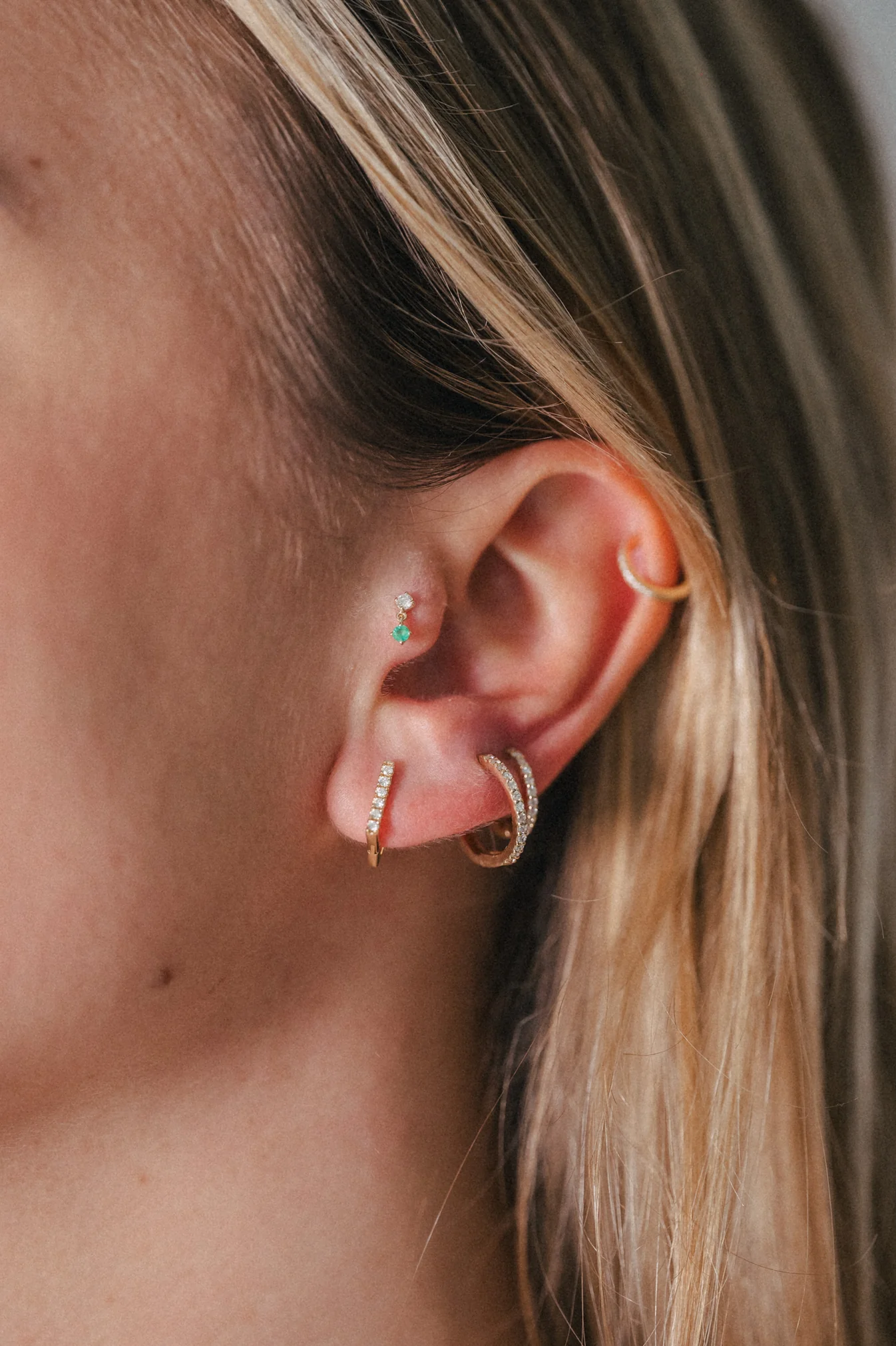 Home » Winkel » Juwelen » Gouden juwelen » Gouden oorbellen » The Wild Jewels – piercing June YG emerald (5mm)