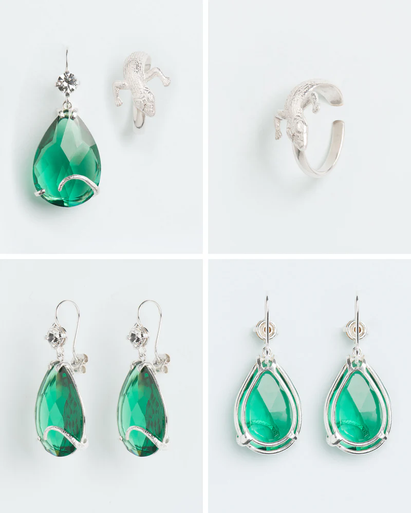 Wouters&Hendrix – oorbel emerald kristal en kristal en salamander cuff