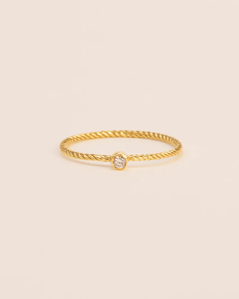 Wouters&Hendrix – 18K gouden twisted ring met witte diamand