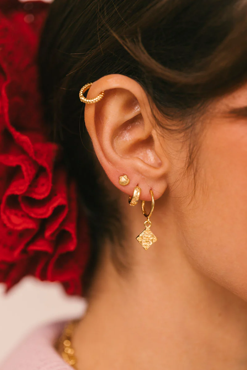 Geniet van de schoonheid van de natuur met de Flora Tile Hoop-oorbellen. Deze prachtige oorbellen hebben een ontwerp dat is geïnspireerd op bloemmotieven en geven de essentie van botanische kunst prachtig weer.
