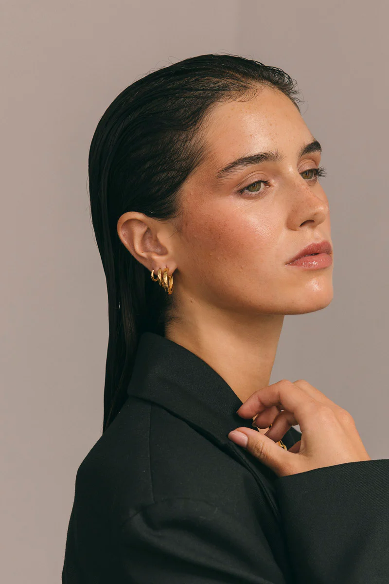 Verhoog je alledaagse look met de Hammered Huggie. Deze basic hoepel oorbel heeft een gehamerde afwerking die textuur en interesse toevoegt, terwijl het huggie ontwerp zorgt voor een goede en comfortabele pasvorm. Ideaal om een subtiele, maar stijlvolle touch aan je oorpresentatie te geven.