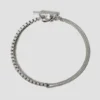 Price range: €235,00 through €295,00Een verfijnde zilveren/vergulde armband met een lineair silhouet. Minimalistisch omhult hij de pols met een stille zelfverzekerdheid, een studie in balans en eenvoud.
