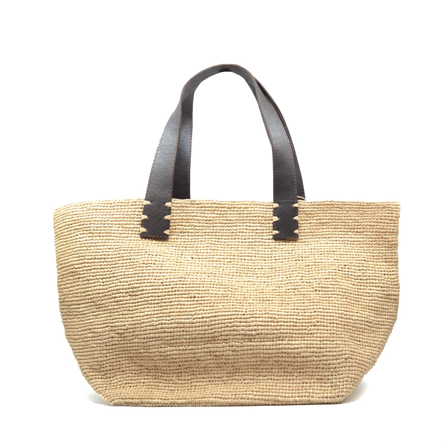 Materiaal: raffia en leder (handvaten)