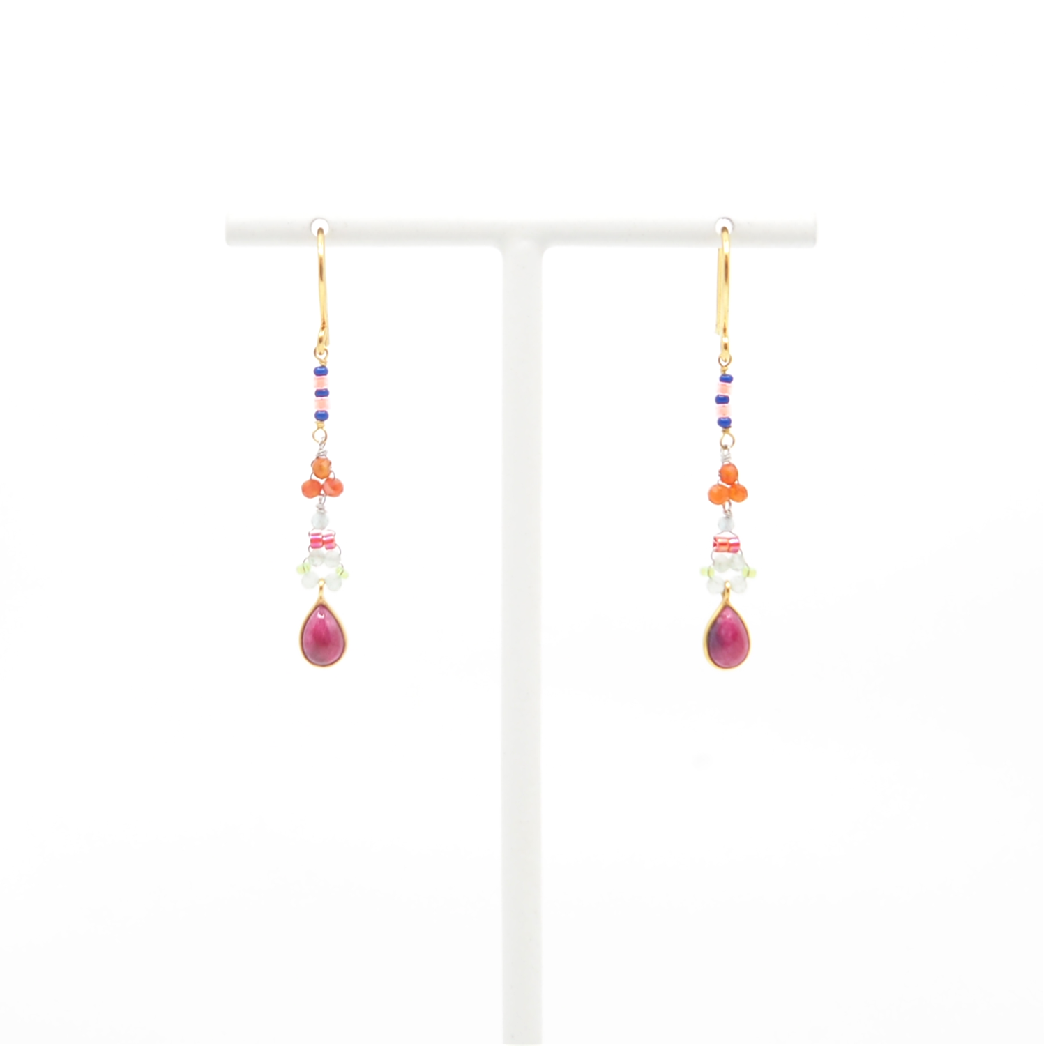 AX – oorbellen met robijn, jaspis, carneool, amethyst en glasparels